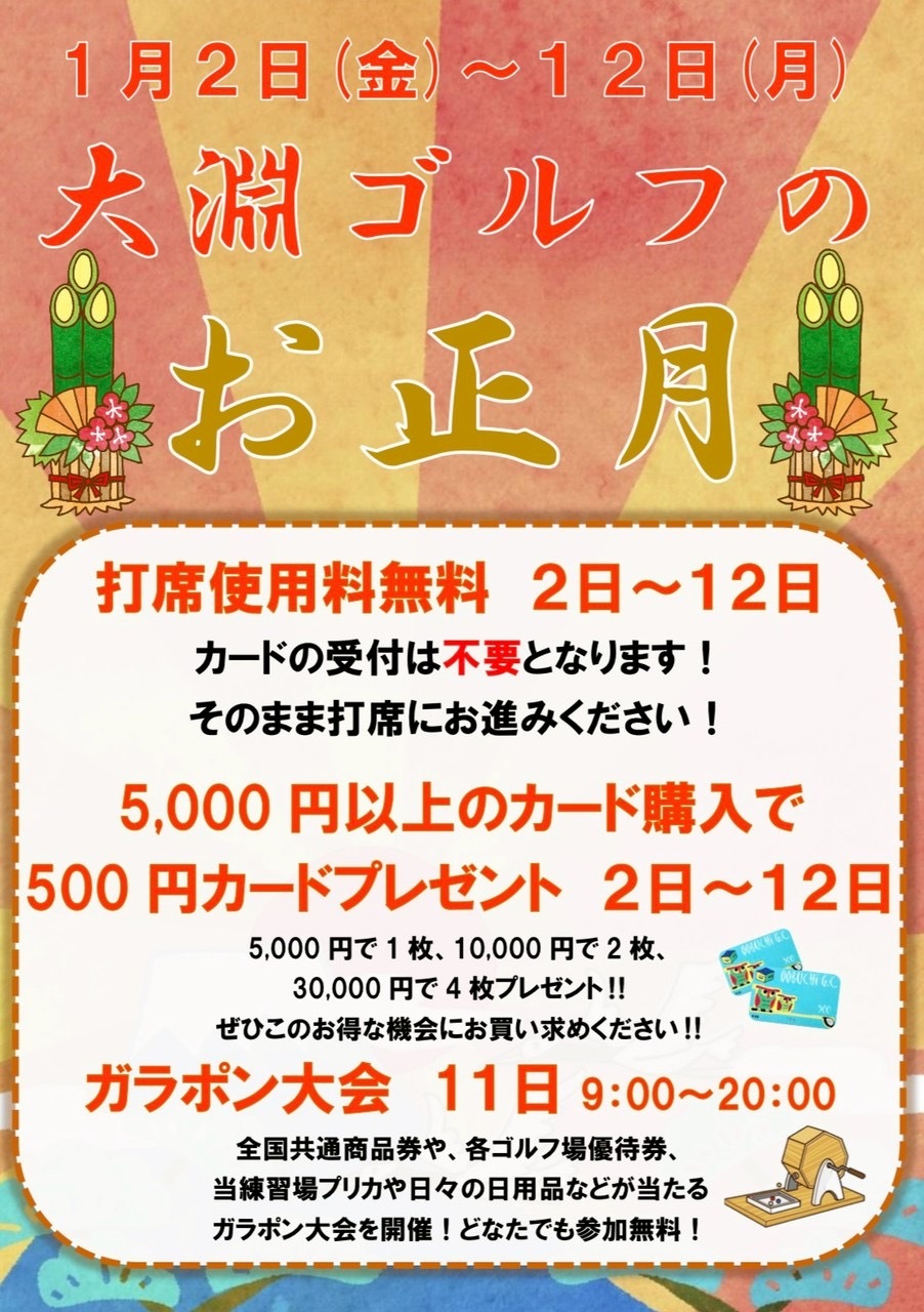 31日大晦日は早朝7:00〜昼12:00までの営業となります🏌️